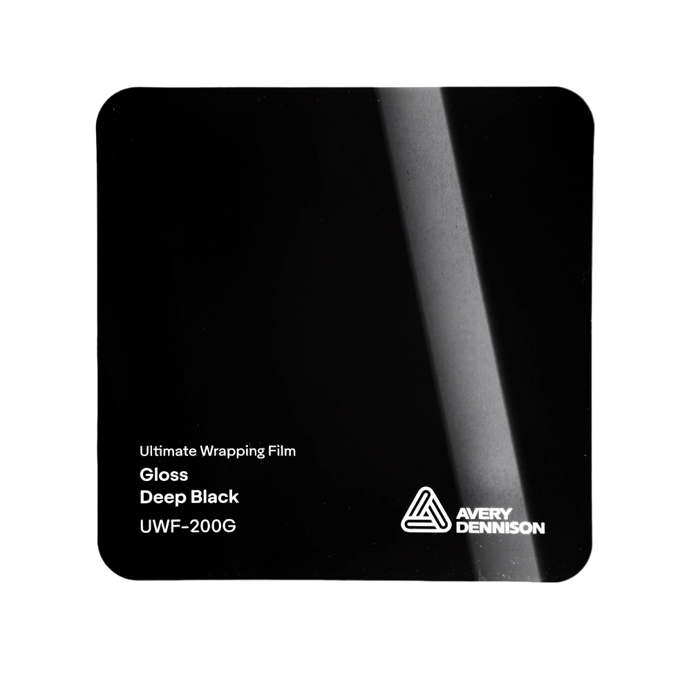 Vinil Gloss Deep Black de Avery Dennison Ultimate Wrapping Film (UWF-200G). Adhesivo de reposicionamiento fácil — aplicación sin burbujas, apto para instaladores profesionales.